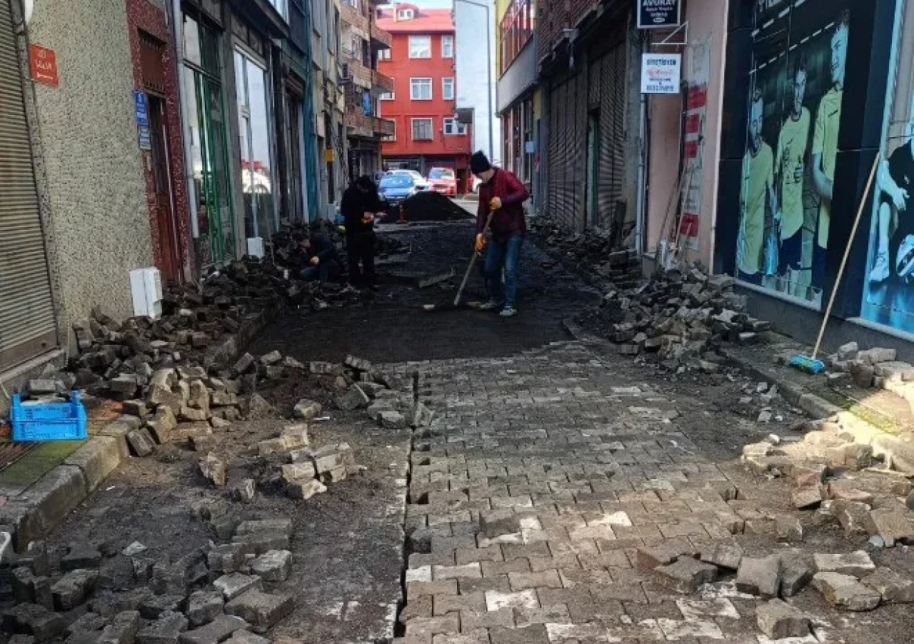 Rize Haber Yerel Haberler Beşikdüzü'nde doğalgaz çalışmaları sonrası parke döşeme işlemleri hızla devam ediyor