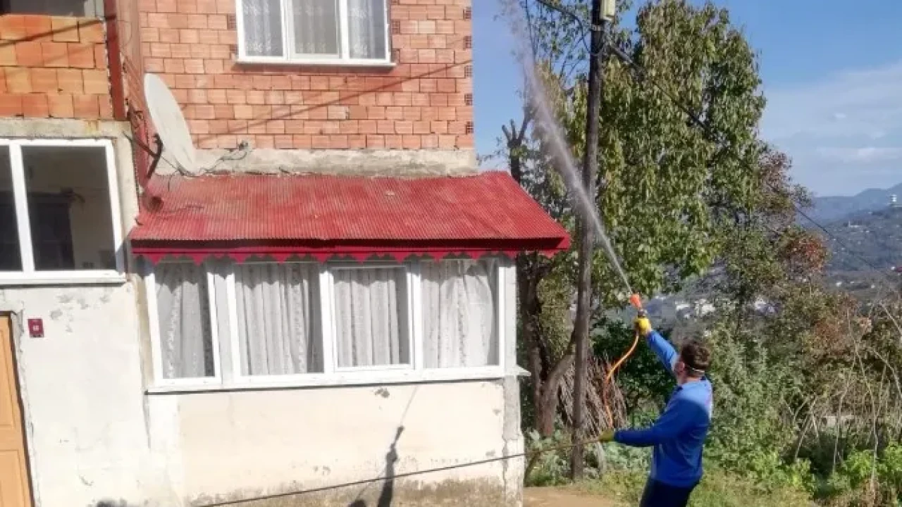 Beşikdüzü İlçesi Nefsişarlı Mahallesi’nde, kahverengi kokarca zararlısına karşı yürütülen kışlak ilaçlama çalışmaları aralıksız devam ediyor.
