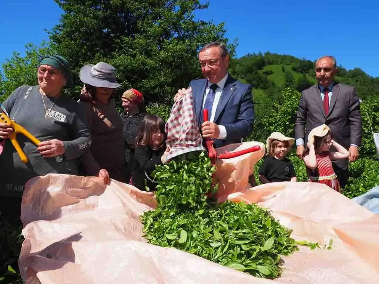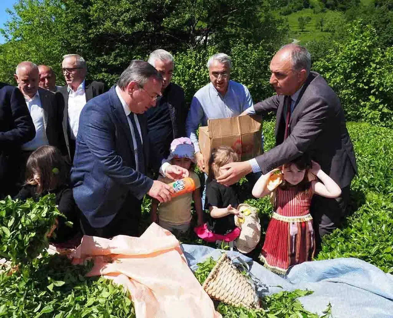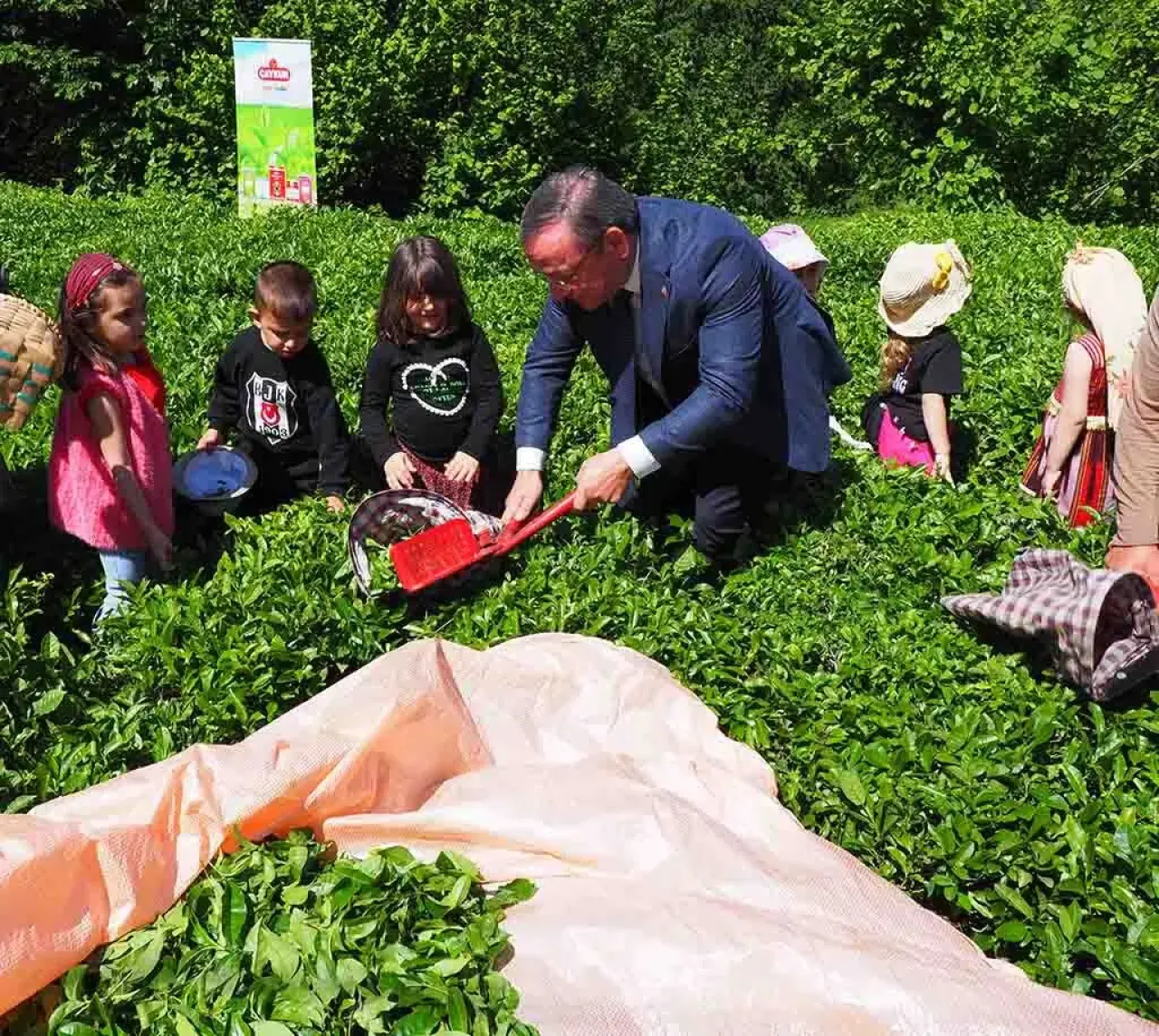 ÇAYKUR Genel Müdürü Yusuf Ziya Alim ve ilçe protokolü Kemalpaşa ilçesine bağlı Köprücü köyünde düzenlenen etkinlikte üreticiler ve çocuklarla çay hasadı gerçekleştirdi.