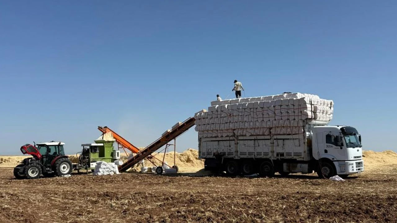 Samancılar, hava sıcaklığının 40 dereceyi aştığı kentte sabahın erken saatlerinde mesaiye başlayıp 17.00'ye kadar tonlarca samanı presleme işleminden sonra kamyonlara yükleyip doğu ve batı illerindeki besicilere ulaştırıyor.