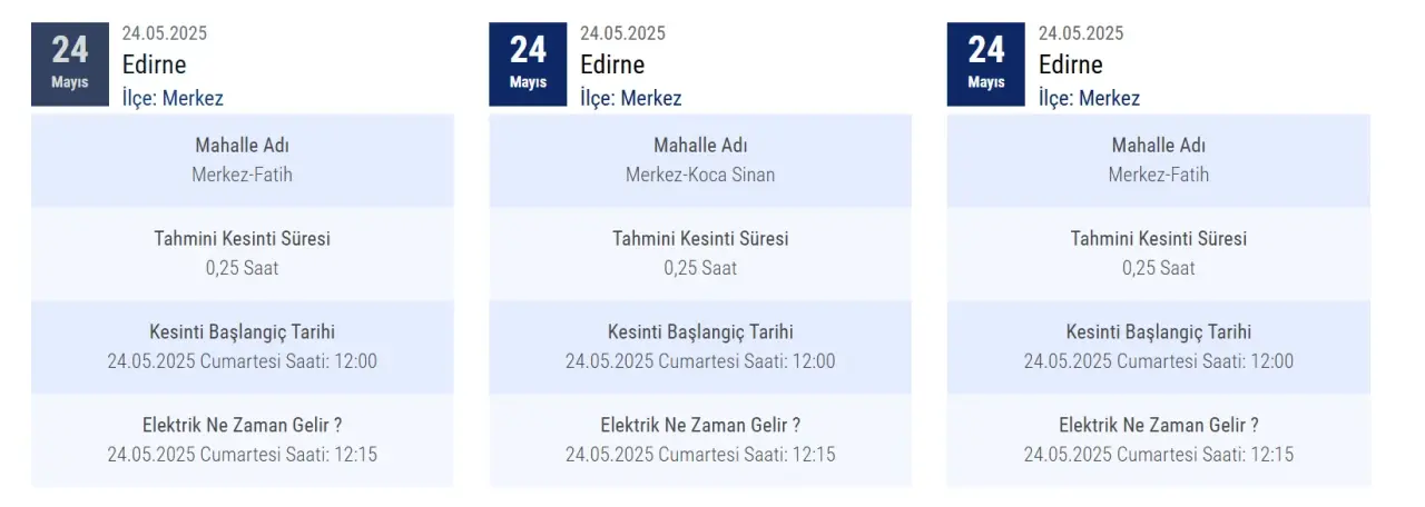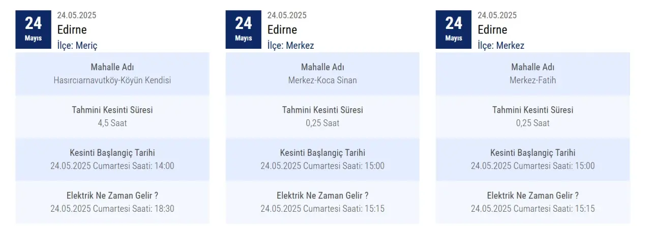 24 Mayıs Cumartesi Elektrik Kesintileri Ayrıntıları
