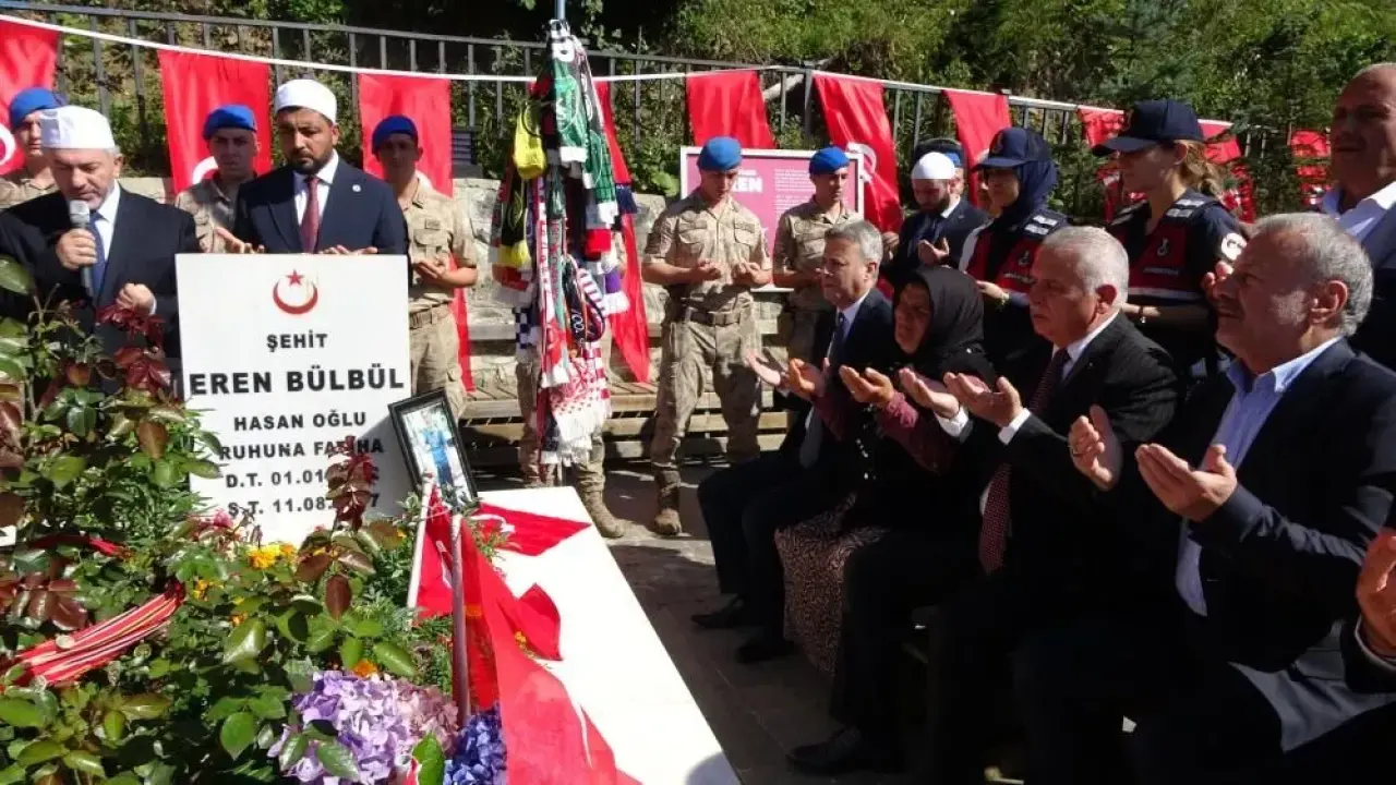 Trabzon'un Maçka ilçesi kırsalında 11 Ağustos 2017 tarihinde bölücü ter*r örgütü mensuplarınca Astsubay Başçavuş Ferhat Gedik ile birlikte şehit edilen 15 yaşındaki Eren Bülbül, şehadetinin 8. yılında mezarı başında anıldı.