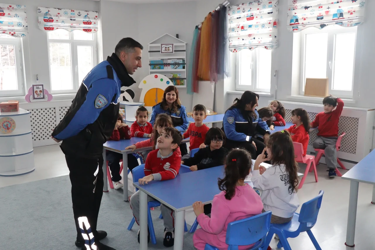Erzurum Emniyet Müdürlüğü ekipleri, Nene Hatun Anaokulu’nda düzenledikleri seminerde çocuklara temel güvenlik ve trafik kurallarını öğretti.