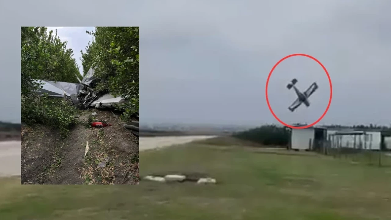 Şeyda Doğan'ın, erkek arkadaşının hazırladığı evlilik teklifi için bindiği uçağın inişte piste yaklaştığı sırada narenciye bahçesine düşmesi cep telefonu kamerasıyla kaydedildi.