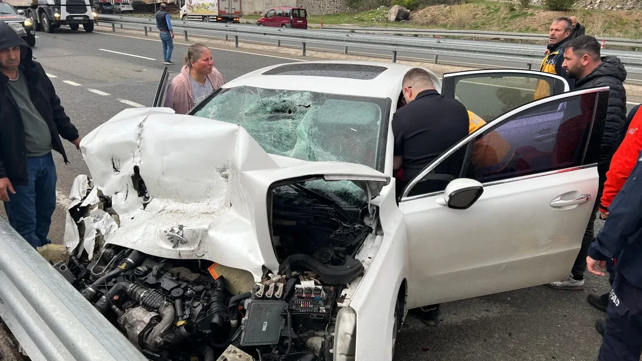 Yaralanan otomobilin sürücüsü ve beraberindeki Y.S. (31), Gümüşhane Devlet Hastanesi'ne kaldırıldı.