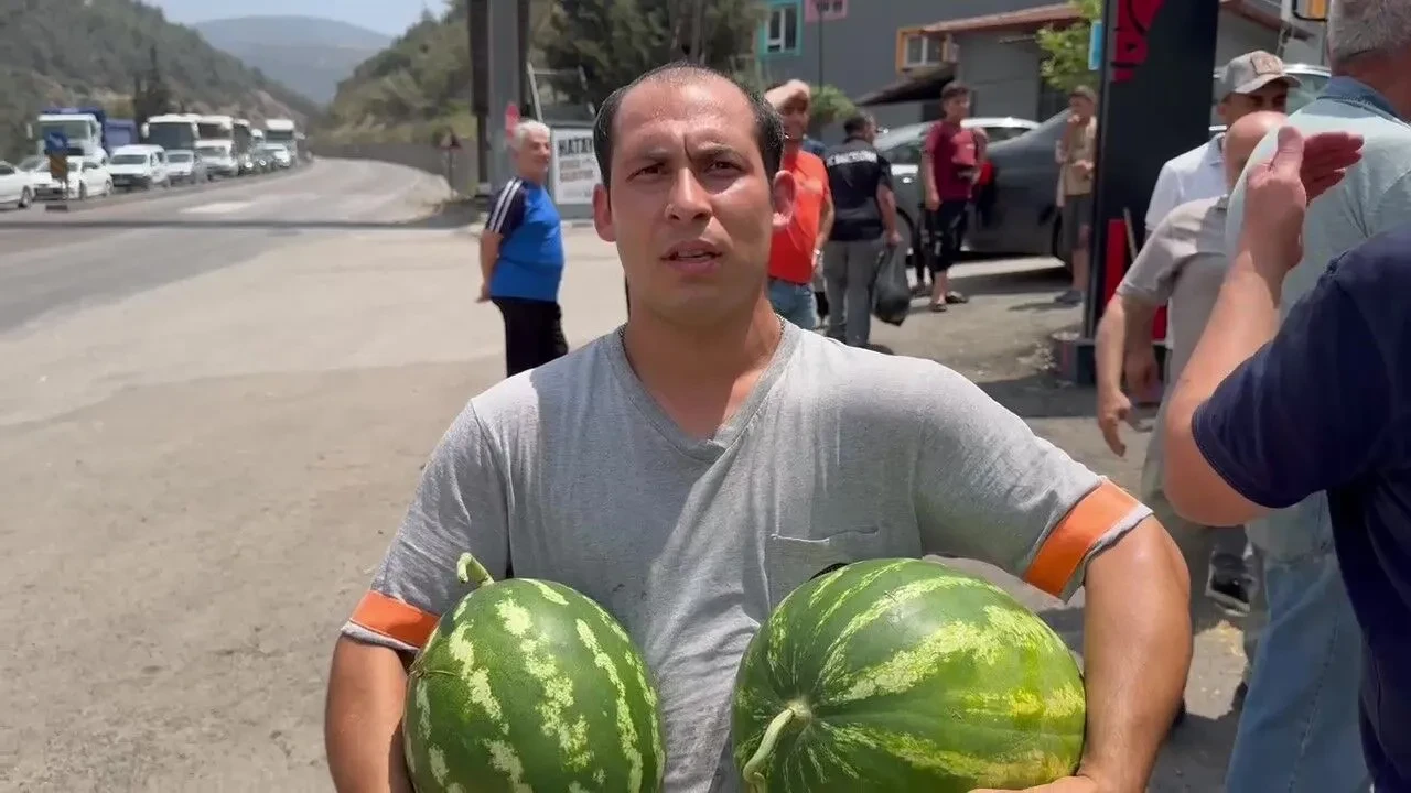 Belen ilçesinde esnaflık yapan Yunus Emre Cömert, bölgede yaşanan sıcak hava dalgası ve karpuz fiyatlarının düşmesi sebebiyle tarlada kalan ürünlerin üzücü durumuna kayıtsız kalamadı. Çiftçilerin zor durumda olduğunu belirten Cömert, “Ürünler tarlada kalıyor, çiftçimiz zor durumda. Biz de bir kamyon dolusu karpuzu alıp vatandaşlarımıza dağıtmak istedik” dedi.