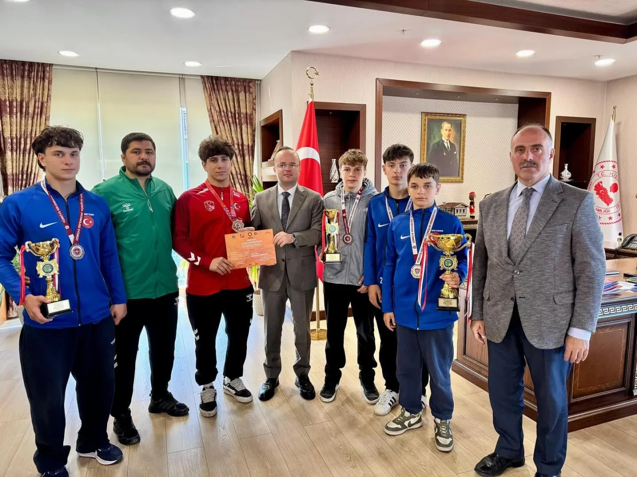 Romanya'daki U15 Balkan Şampiyonası'nda üçüncülük kazanan İsmet Anıl Yaz ve Erzurum'daki güreş turnuvasında başarılı olan sporcular, Hopa Kaymakamı Abdullah Arslantürk'ü ziyaret ederek başarılarını kutladı. Kaymakam, genç sporcuları tebrik etti ve gelecek başarılar diledi.