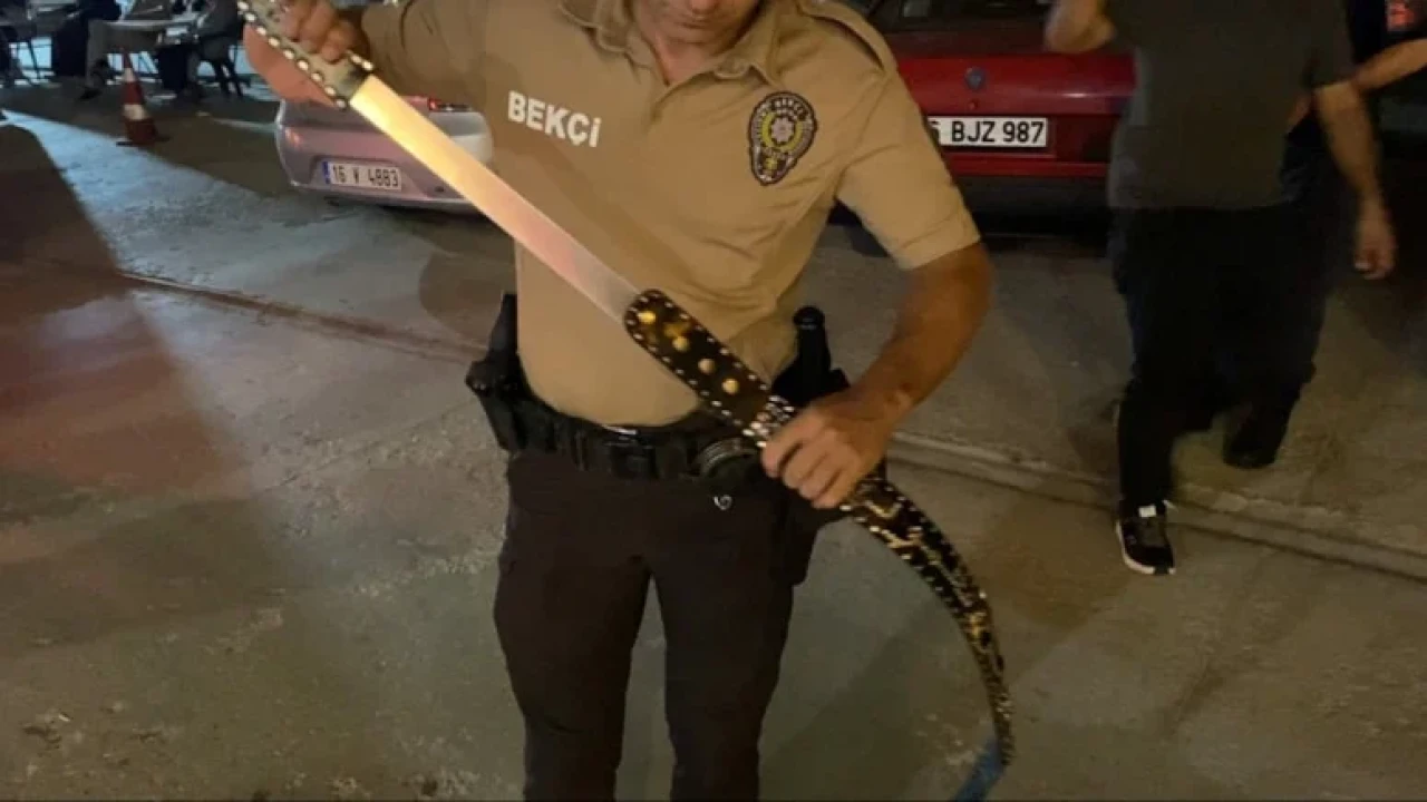 Bursa’nın İnegöl ilçesinde Suriye uyruklu olduğu belirtilen Muhammed K.’nin kimlik kontrolünün ardından yapılan üst aramasında, belinde kemer gibi taktığı özel kılıf içinde 60 santimetre uzunluğunda döner bıçağı bulundu.