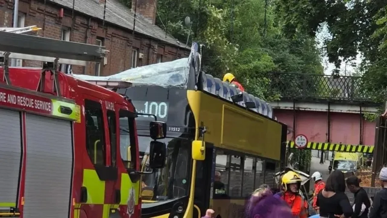 Otobüs, yüksekliği yalnızca 3.5 metre olan Bridgewater Kanalı üzerindeki kemerli köprüye çarptı.