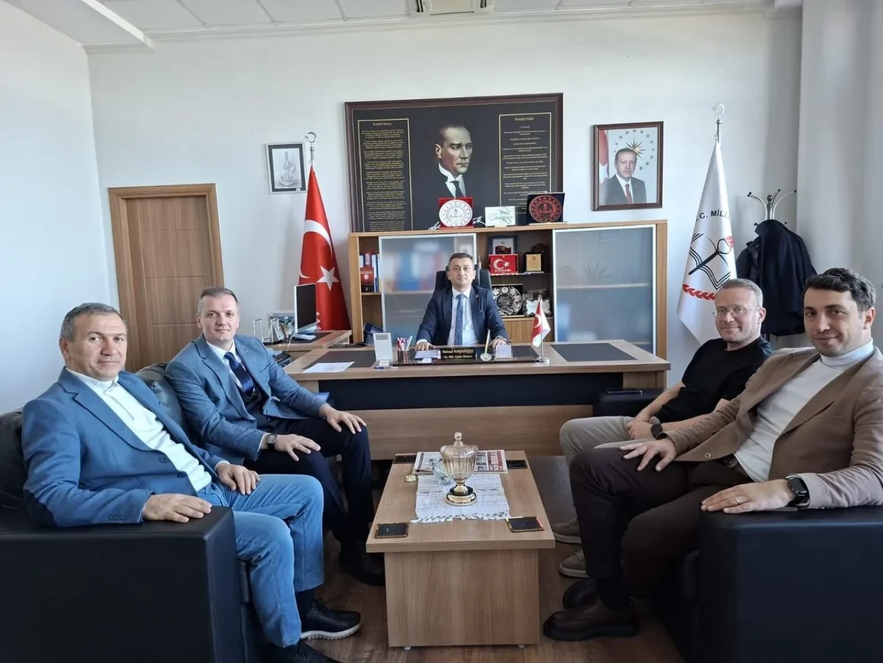 İyidere Gençlik ve Spor İlçe Müdürü Sinan Kaba, ilçe müdürlüğü bünyesinde görev yapan antrenörlerle birlikte İyidere İlçe Millî Eğitim Müdürü Mehmet Haldızoğlu’nu makamında ziyaret etti.