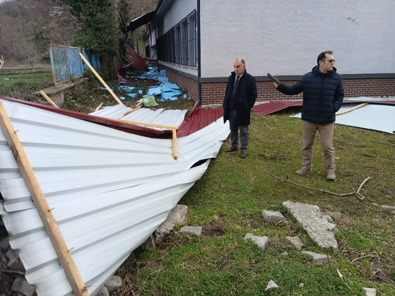 Artvin Kemalpaşa'da süren fırtına, Anadolu Lisesi atölye binasının çatısına zarar verdi. İlçe Milli Eğitim Müdürü, öğrencilerin güvenliği için tedbirlerin alındığını belirtti ve hasar tespitinin hızla tamamlanmasını istedi. Olay, hafta sonuna denk geldiği için can kaybı yaşanmadı.