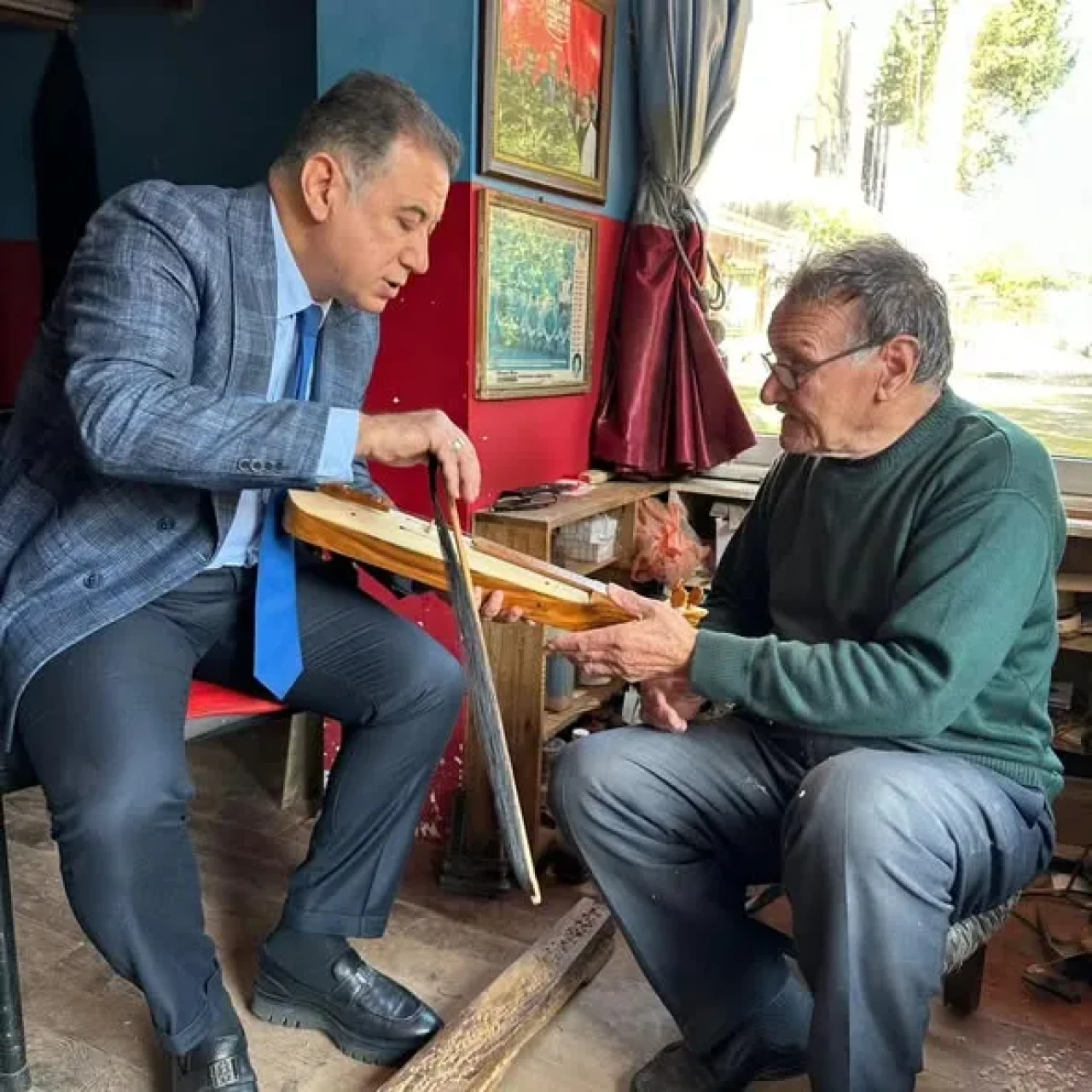 Trabzon'un Sürmene ilçesinde, Somut Olmayan Kültürel Miras Taşıyıcısı unvanına sahip olan usta sanatçılarla önemli bir buluşma gerçekleştirildi. İl Kültür ve Turizm Müdürü Tamer Erdoğan, kemençe yapımında Yaşayan İnsan Hazinesi olarak tanınan Hasan Sancak'ı atölyesinde ziyaret ederek, bu değerli kültürel mirasın üretim süreci hakkında ayrıntılı bilgiler aldı. Kemençe yapım geleneği üzerinde yıllardır süregelen deneyimlerini paylaşan Sancak, ustalıkla bu sanatın nasıl icra edildiğini bir kez daha gözler önüne serdi. Geleneksel müziğimizin vazgeçilmez bir parçası olan kemençenin yapılışına tanıklık etmek, bu kültürel zenginliğin önemini derinlemesine kavramaya yardımcı oldu.