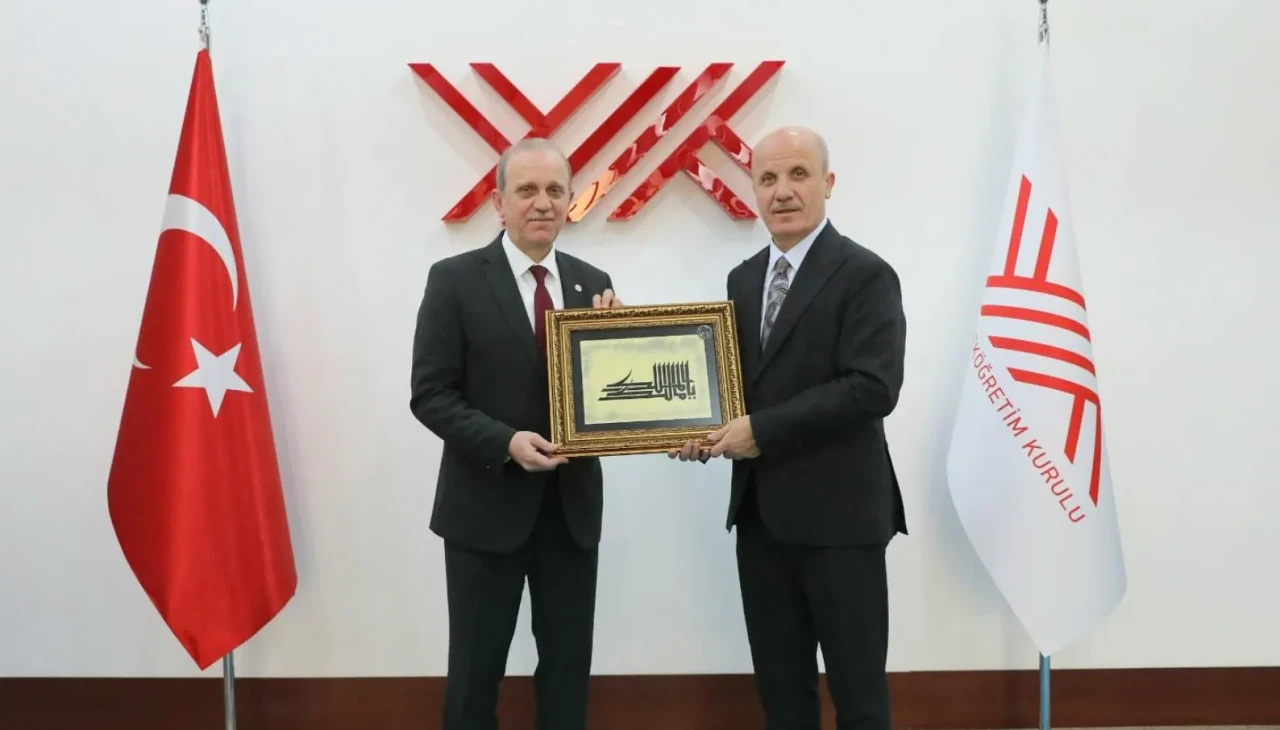 KTÜ Rektörü Prof. Dr. Hamdullah Çuvalcı, YÖK Başkanı Erol Özvar’ı ziyaret etti. Görüşmede yükseköğretim çalışmaları ve KTÜ'nün hedefleri ele alındı. Rektör Çuvalcı, Özvar’a hat tablosu hediye etti. Ziyaret, hatıra fotoğrafı ile sona erdi.