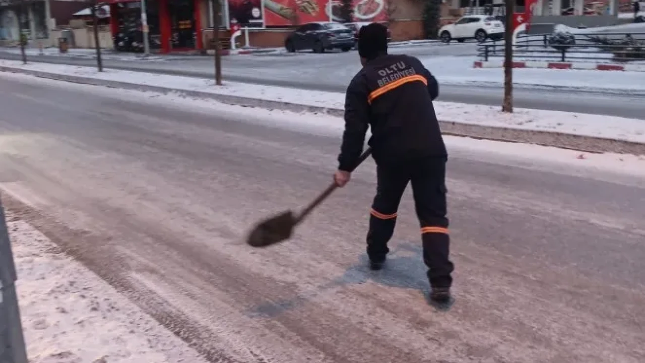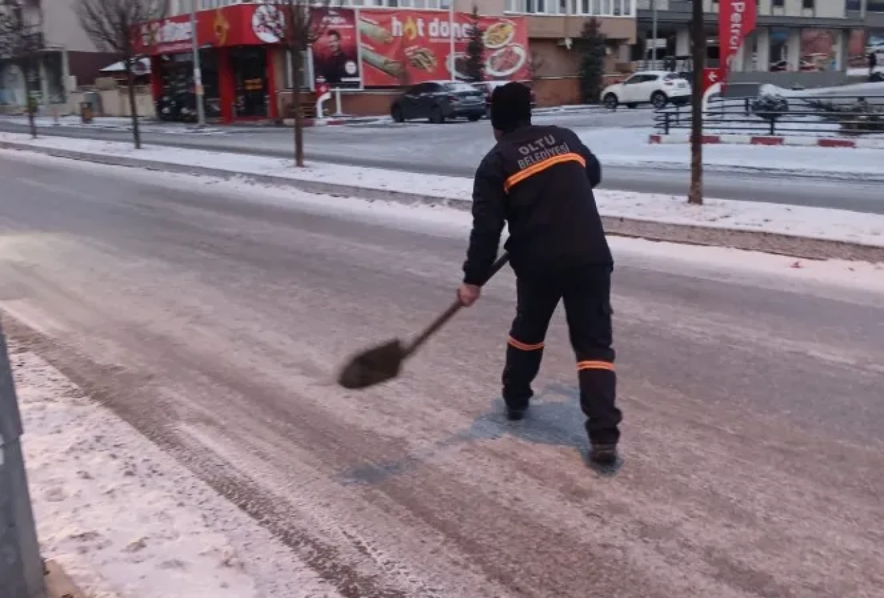 Oltu Belediyesi, sabah erken saatlerde ilçe genelinde buzlanmayı önlemek için tuzlama ve kontrol çalışmaları başlattı. Yetkililer, vatandaşların güvenliği için dikkatli olmaları uyarısında bulundu ve çalışmaların gün boyunca süreceğini açıkladı.