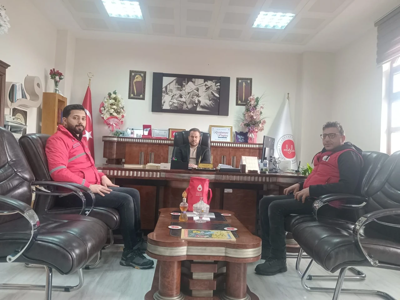 Erzurum Kızılayı yetkilileri Muhammet Mecit Öztürk ve Emirhan Sönmez, Oltu İlçe Müftüsü Veysel Çelebi’yi makamında ziyaret etti. Ziyarette, toplum sağlığı açısından büyük önem taşıyan kan bağışı çalışmaları hakkında karşılıklı bilgi alışverişinde bulunuldu.