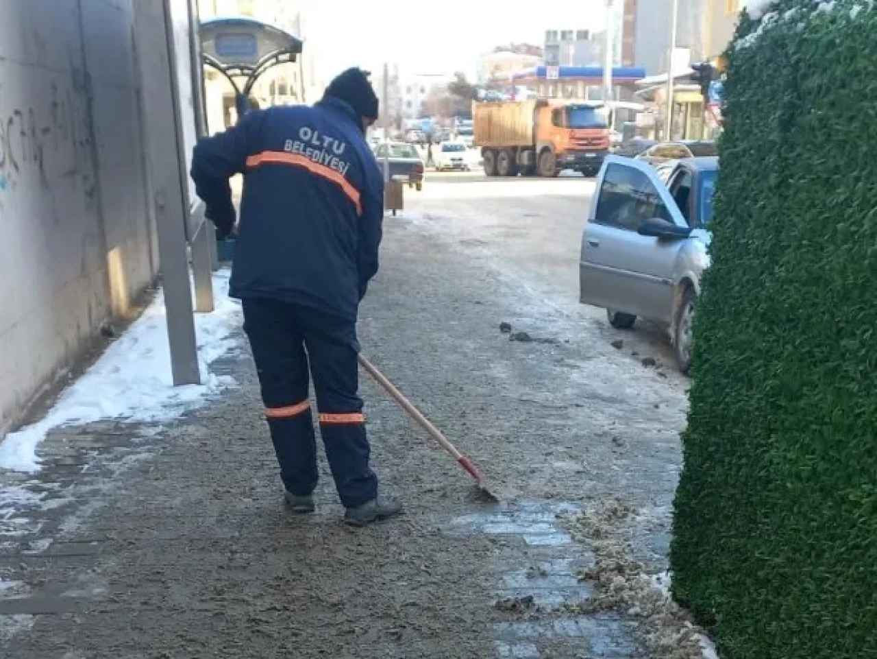 Oltu Belediyesi ekipleri, kış şartlarının olumsuz etkilerini en aza indirmek amacıyla ilçede karla mücadele çalışmalarını aralıksız sürdürüyor. Kar yağışının başladığı ilk günden bu yana özellikle kaldırımlarda oluşan buzlanmaya karşı kar küreme, buz kırma ve tuzlama çalışmaları gece gündüz devam ediyor.
