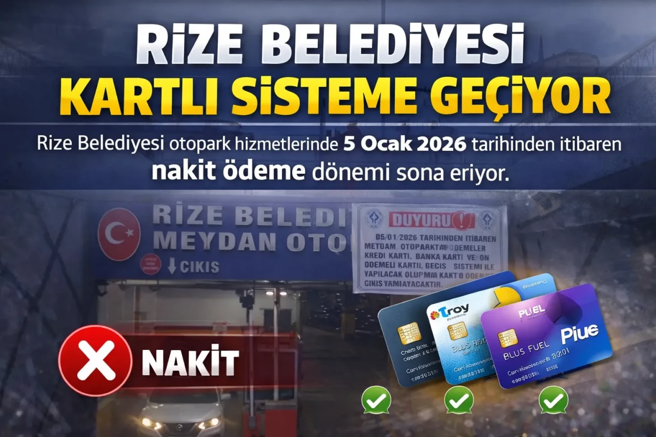 Rize Belediyesi, otopark hizmetlerinde yeni bir uygulamayı hayata geçiriyor. Yapılan duyuruya göre, 5 Ocak 2026 tarihinden itibaren meydan otoparkında nakit ödeme dönemi sona eriyor.