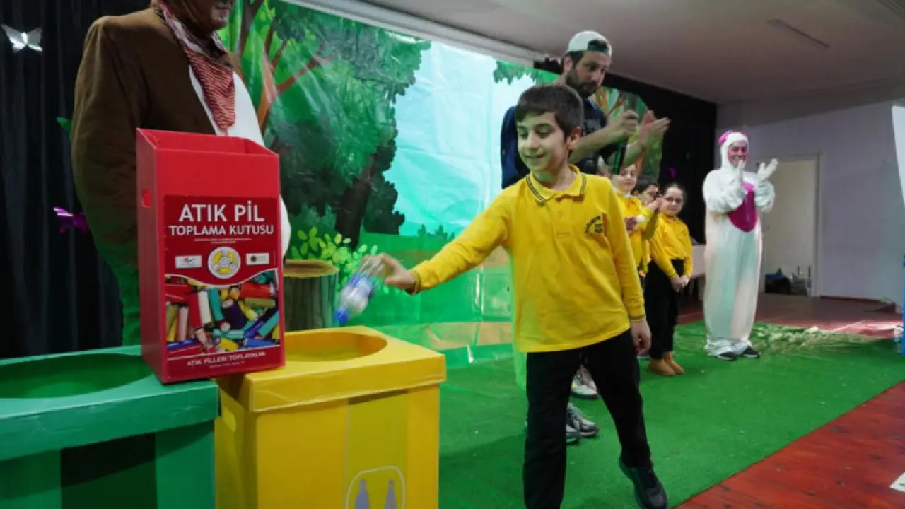 Öğrencilere geri dönüşümün önemi ve sıfır atık uygulamalarının çevreye katkıları eğlenceli ve interaktif bir anlatımla aktarıldı. Büyük ilgi gören gösteride, atıkların doğru ayrıştırılması ve çevre dostu alışkanlıkların günlük hayatta nasıl uygulanabileceği sahne performanslarıyla anlatıldı.