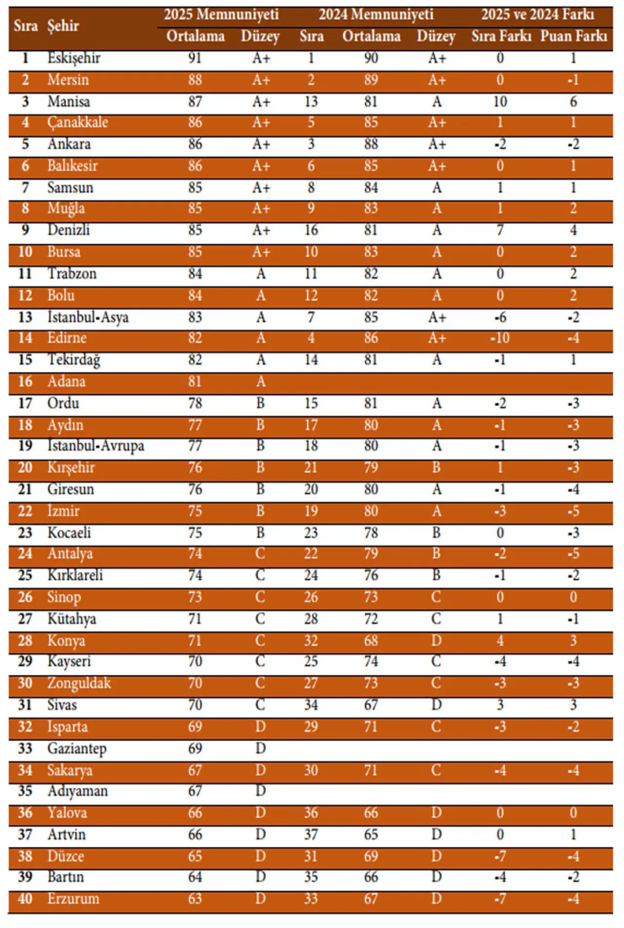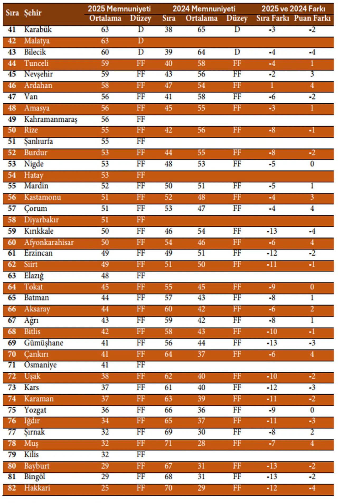 Türkiye genelinde yapılan değerlendirmeler ise daha geniş bir memnuniyet eksikliğini gözler önüne serdi. Sonuçlar, öğrencilerin sadece 23 şehirden memnuniyet hissettiğini, buna karşılık 51 şehirde öğrenci memnuniyeti konusunda ciddi bir duyarlılığın olmadığı ve öğrencilerin bu şehirlerden ve halkından önemli ölçüde memnuniyetsizlik duyduğu belirtildi.