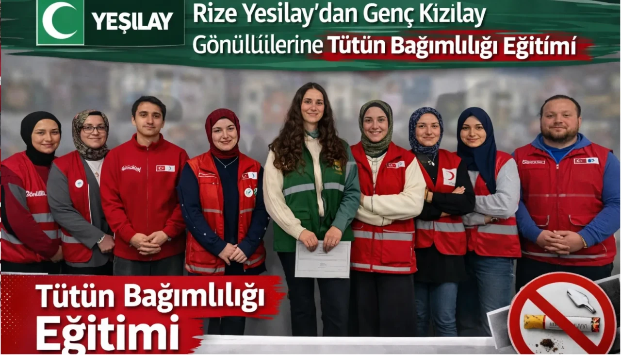 Rize Yeşilay İl Başkanlığı tarafından, Genç Kızılay gönüllüleri ve personeline yönelik tütün bağımlılığı konusunda bilgilendirme eğitimi düzenlendi. Yeşilay’ın bağımlılıkla mücadele çalışmaları kapsamında gerçekleştirilen program, koruyucu ve önleyici faaliyetler çerçevesinde yapıldı.