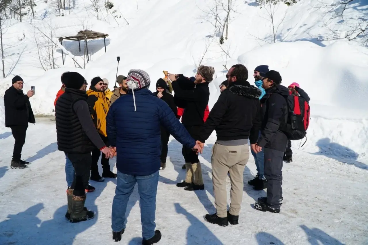 Buz gibi sudan çıkan katılımcılar, yakılan ateş etrafında horon oynayarak ve yöresel ikramlarla ısınmaya çalıştı. Etkinlik, renkli görüntülere sahne oldu.