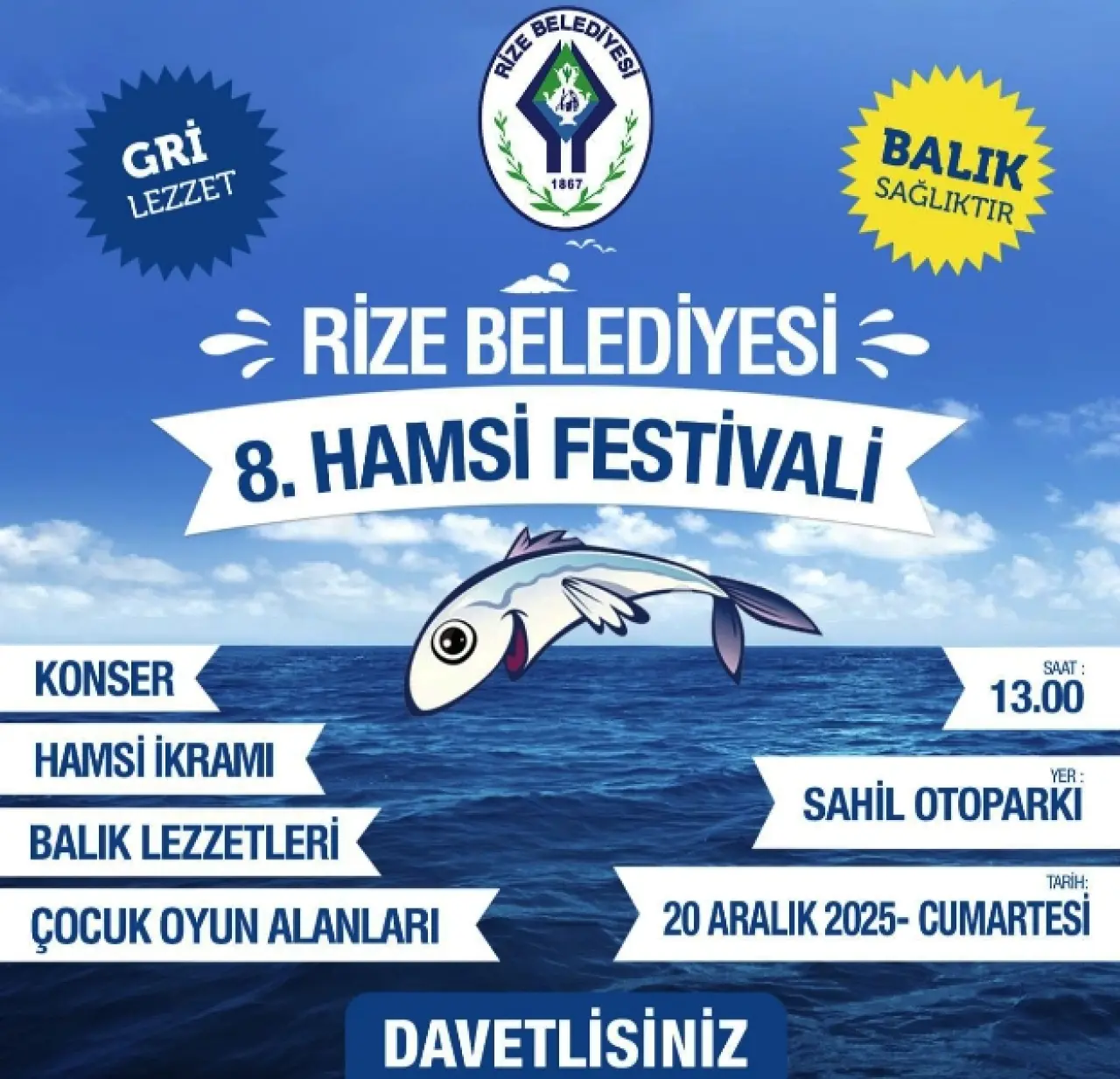 “Balık sağlıktır” anlayışıyla düzenlenecek olan 8. Hamsi Festivali’ne Rize Belediyesi, tüm hemşehrilerini ve misafirleri davet ediyor