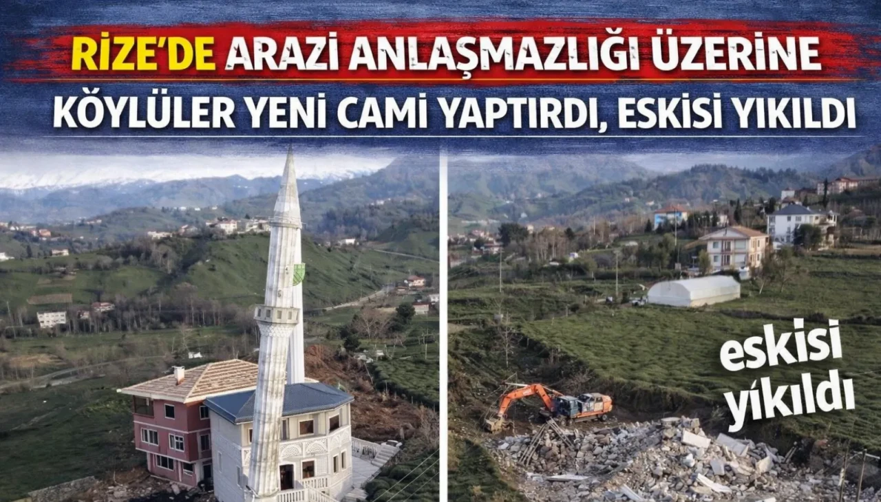 Rize'de arazi anlaşmazlığı üzerine köylüler yeni cami yaptırdı, eskisi yıkıldı