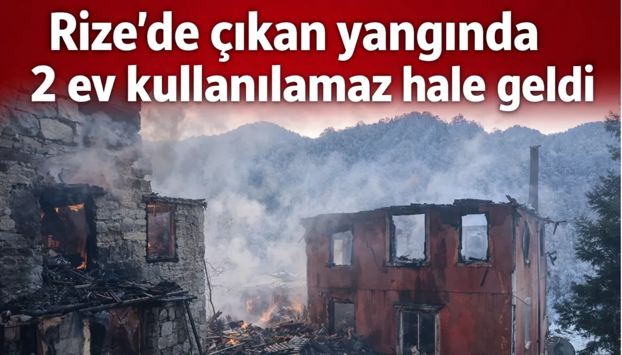 Rize'nin Hemşin ilçesinde çıkan yangında 2 ev zarar gördü.
