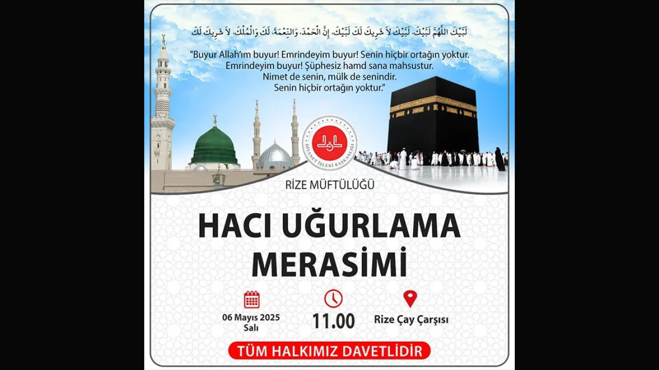 Rize Müftülüğü, bu önemli etkinliğe tüm halkı davet ederek, vatandaşların hacı adaylarına destek vermesi ve bu anlamlı günde onların yanında olması için çağrıda bulunuyor. Uğurlama merasiminin hac yolculuğunun manevi önemini vurgulamak ve bu kutsal görevi yerine getirecek olan adaylara moral vermek amacıyla düzenlendiği belirtildi.