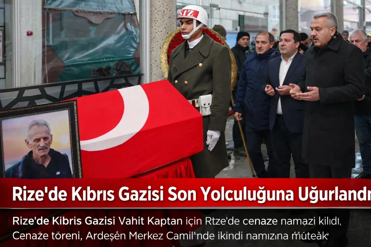 Önceki gün hayatını kaybeden Kıbrıs Gazisi Vahit Kaptan için Rize'de cenaze namazı kılındı.