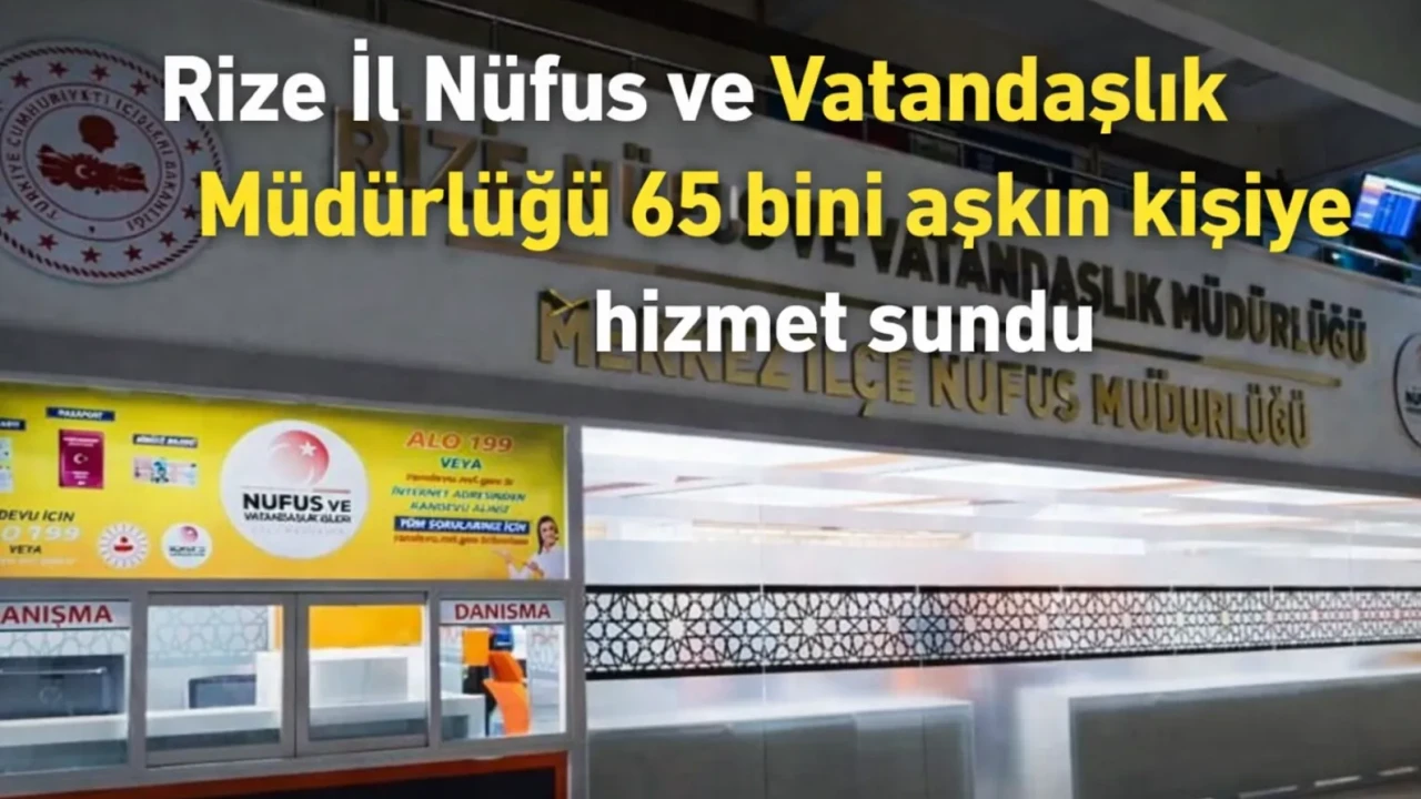 Rize İl Nüfus ve Vatandaşlık Müdürlüğü, 2025 yılı boyunca toplam 65 bin 820 vatandaşa hizmet verdi. Bu süreçte, 31 bin 728 T.C. kimlik kartı, 24 bin 33 sürücü belgesi ve 10 bin 59 pasaport başvurusu alındı.