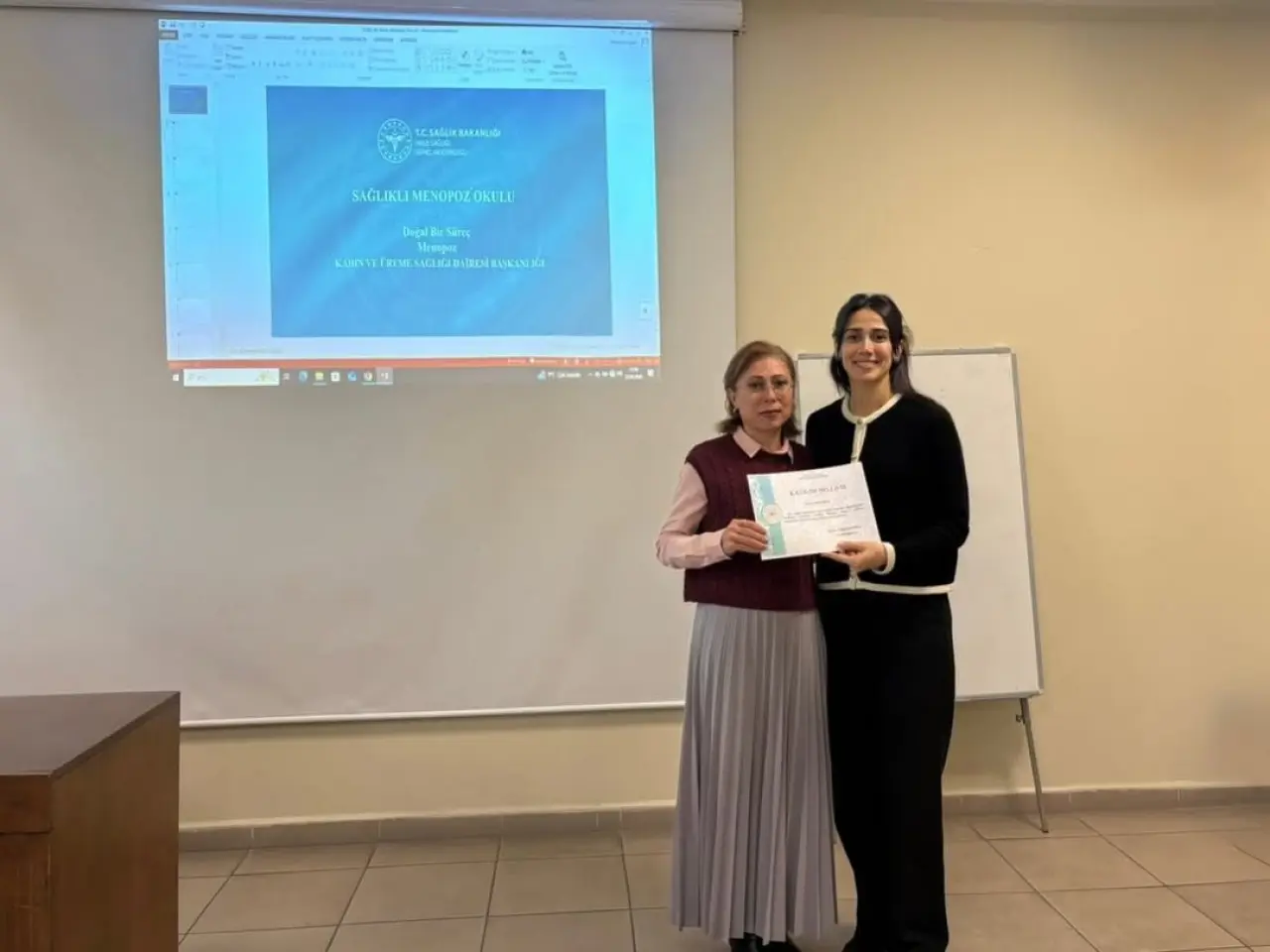 Sağlık Bakanlığı’nın temel hedefleri doğrultusunda hayata geçirilen eğitimde, menarş döneminden menopoza kadar kadın sağlığının her evresinde korunması, desteklenmesi ve sürdürülebilirliğinin sağlanması amaçlandı. Program kapsamında, bilimsel veriler ışığında sunulan sağlık hizmetlerinin yanı sıra eğitim ve danışmanlık faaliyetlerinin önemi vurgulandı.