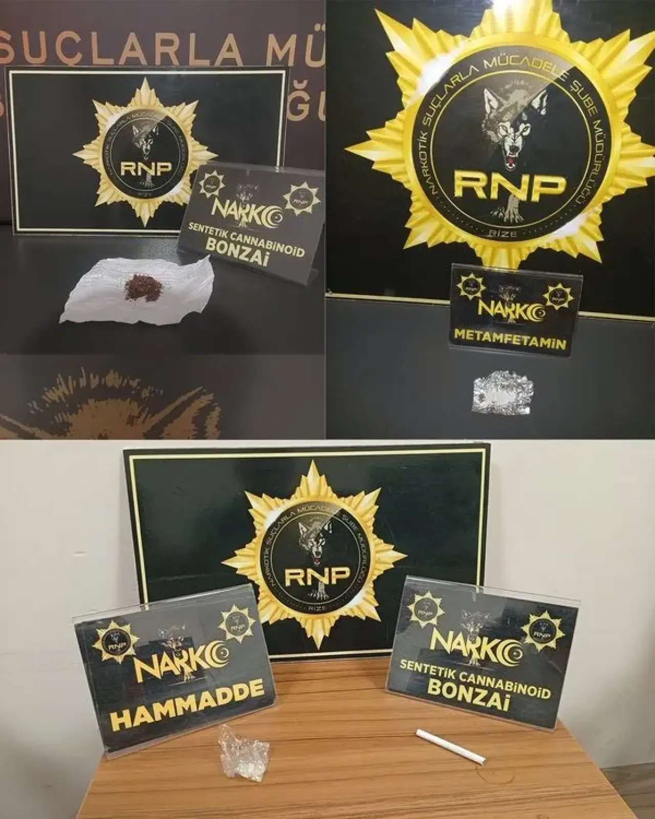 Rize Emniyet Müdürlüğü Narkotik Şube ekiplerince takibe alınan uyuşturucu tacirleri çeşitli miktarlarda uyuşturucu ile yakalandı. Emniyet Müdürlüğüne bağlı Narkotik Şube Müdürlüğü ekipleri 09.07 ile 11.08.2025 tarihleri arasında il genelinde uyuşturucu ve uyarıcı madde getirecekleri değerlendirilen ve uyuşturucu madde satacakları belirlenen şahıslara yönelik yaptıkları üst ve araç aramalarında 61,25 gram sentetik cannobinoid (bonzai) maddesi,6,69 gram sentetik cannobinoid (bonzai) hammaddesi, (yaklaşık 600 gram bonzai üretilebilen madde), 29,33 gram metamfetamin maddesi, 2,57 gram esrar maddesi, 109 kök kenevir bitkisi, 1 adet uyuşturucu kullanım aparatı ele geçirildi.