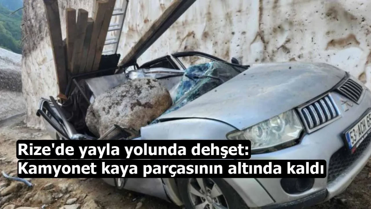 Rize'de yayla yolunda dehşet: Kamyonet kaya parçasının altında kaldı
