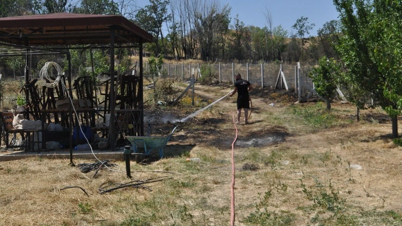 Kuru otları yakarken yangın çıktı, tarlalar ve meyve bahçeleri zarar gördü