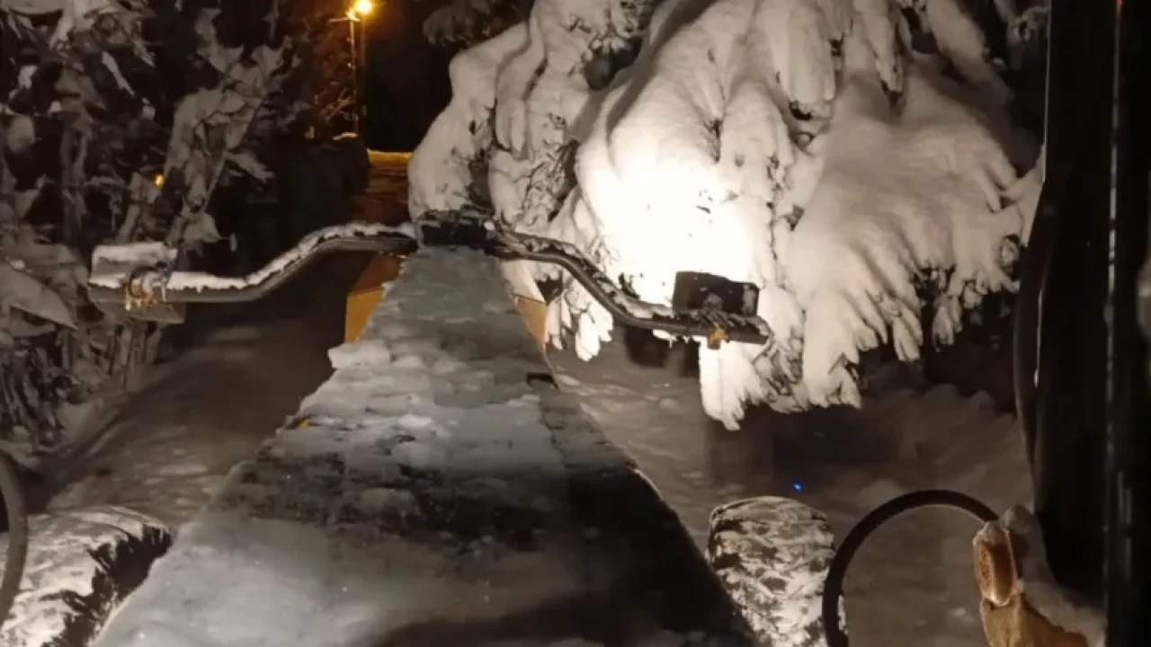 Şalpazarı'nda kar yağışı sonrası devam eden karla mücadele çalışmaları sırasında, yol kenarındaki ağaç dalları iş makinelerine zarar verdi. Belediye, ekiplerin 7/24 çalıştığını ve vatandaşların tehlikeli ağaçlar konusunda dikkatli olmalarını istedi.