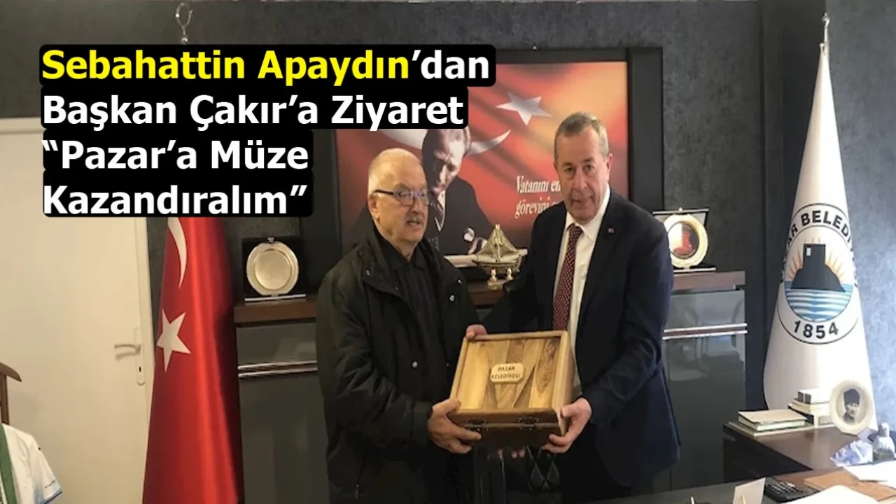 Eğitim, spor, kültür ve turizm alanlarında yaptığı katkılarla bilinen Sebahattin Apaydın, ziyaret sırasında Başkan Çakır’a bir hatırlatmada bulundu. Çakır’ın geçmişte Pazar Ticaret Odası Başkanlığı döneminde verdiği “müze” sözünü hatırlatan Apaydın, “Pazar’da tarihi envanterin sergilenebileceği, ilçenin hafızasını yaşatacak bir müze yapılmalı” dedi. Ayrıca bu müzeye 200-300 yıllık el yazması bir Kur’an-ı Kerim bağışlayacağını da açıkladı.