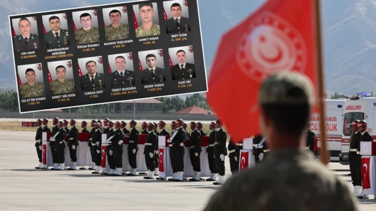 Yüksekova Selahaddin Eyyubi Havalimanı'nda düzenlenen törende şehitler Piyade Teğmen Furkan Sert, Piyade Komando Astsubay Kıdemli Çavuş Fikret Mangura, İstikam Uzman Çavuş Ümit Üzüm, Piyade Uzman Çavuşlar Enver Yaman ve Kani Obi ile Piyade Sözleşmeli Er Celattin Uyanık, İstihkam Üsteğmen Ege Akar, Mühimmat Astsubay Kıdemli Çavuş Abdurrahman Akdoğan, piyade sözleşmeli erler Ahmet Kuşak, Özkan Özkanlı, Ahmet Gültekin ve Mahsun Yeşildemir'in Türk bayraklarına sarılı naaşları alana getirildi.