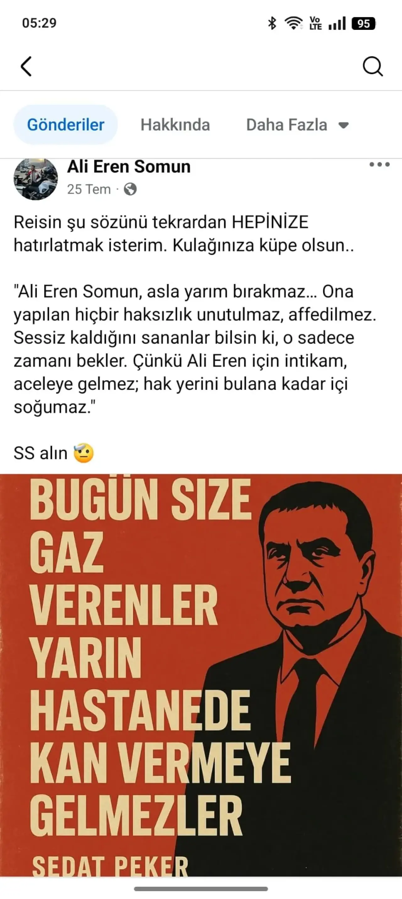 31 Mart 2024 yerel seçimlerinde Yeniden Refah Partisi’nden Beşikdüzü Belediye Meclis Üyeliğine aday olan Ali Eren S., cinayetten günler önce sosyal medya hesabından intikam dolu mesajlar paylaşmıştı. Mesajında “Ali Eren S., asla yarım bırakmaz… intikam, aceleye gelmez; hak yerini bulana kadar içi soğumaz” ifadelerine yer verdi.