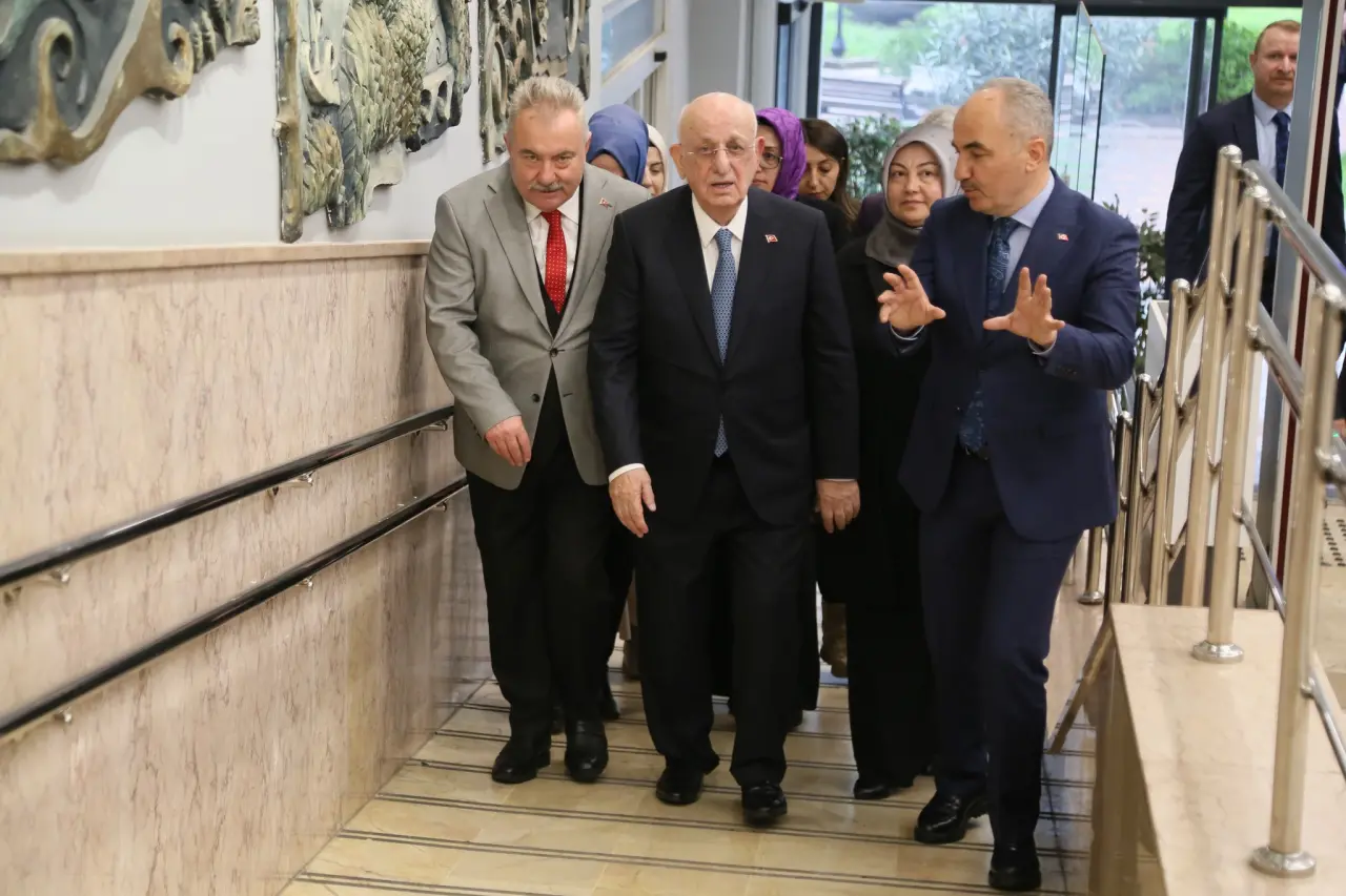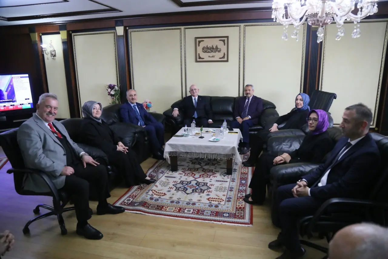 TBMM eski Başkanı İsmail Kahraman’ı, Belediye Binası girişinde Belediye Başkanı Rahmi Metin karşıladı.