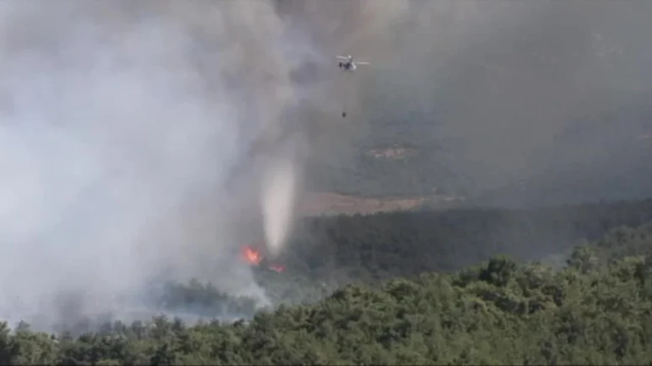 Yakaköy'de çatıda çıkan yangın rüzgarla büyüyüp ormana sıçradı, 455 ev tahliye edildi